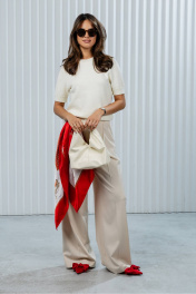 Этот элегантный и универсальный джемпер станет отличным выбором для вашего гардероба! Он идеально подходит для создания лёгких и модных луков, сочетая в себе комфорт, стиль и универсальность. Такой наряд отлично впишется в повседневный стиль, офисные будни или прогулки по городу. Описание топа: Цвет: молочный (шоколадный), который добавляет образу свежесть и лёгкость; Дизайн: джемпер с короткими рукавами и округлым вырезом горловины. Лаконичный крой и мягкая текстура придают изделию женственность и универсальность; Материал: лёгкая и приятная на ощупь трикотажная ткань, которая обеспечивает комфорт в течение всего дня. С чем носить: Джемпер отлично дополнят солнцезащитные очки, как на фото, стильные серьги и сумка нейтрального оттенка. Для завершения образа подойдут туфли на каблуке, лодочки или стильные сандалии. Яркий шарф или платок добавит образу оригинальность. Уход за изделием: Джемпер рекомендуется стирать в деликатном режиме при температуре до 30°C. Не использовать отбеливатели. Сушить в расправленном виде, избегая прямых солнечных лучей.