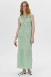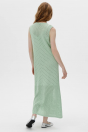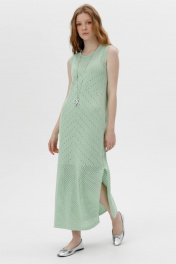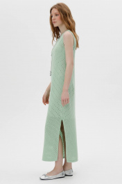 Это элегантное вязаное платье станет изысканным дополнением вашего гардероба. Выполненное из мягкой пряжи с ажурным узором, оно имеет круглый вырез и боковой разрез, придающий образу легкость и женственность. Платье идеально подходит для создания стильных и комфортных образов как на каждый день, так и для особых случаев. Особенности: Материал: 100% натуральная пряжа Фасон: без рукавов, круглый вырез, боковой разрез Длина: до середины икры Подходит для любого сезона Это платье станет отличным выбором для тех, кто ценит комфорт и стиль.