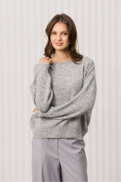 Джемпер прямого силуэта с заниженной линией плеча. Рукав рубашечный длинный . Джемпер очень мягкий и приятный к телу, вывязан переплетением кулирная гладь.Низ изделия и низ рукава связаны переплетением ластик 1*1. Вырез горловины в виде "лодочки".