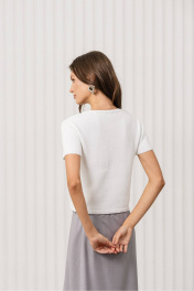 Этот стильный и универсальный джемпер станет отличным дополнением вашего гардероба! Он идеально подходит для создания элегантных и женственных луков, сочетая в себе комфорт, простоту и изысканность. Цвет: белый (бежевый лайт, темно-бирюзовый), который добавляет образу свежесть и лёгкость; Дизайн: джемпер с короткими рукавами и круглым вырезом горловины. Лаконичный крой и мягкая текстура придают изделию женственность и универсальность; Материал: мягкая и приятная на ощупь трикотажная ткань, которая обеспечивает комфорт в течение всего дня. Джемпер отлично дополнят туфли на каблуке, лодочки или стильные балетки. Для завершения образа подойдут минималистичные аксессуары, такие как тонкий браслет или серьги. Уход за изделием: Джемпер рекомендуется стирать в деликатном режиме при температуре до 30°C. Не использовать отбеливатели. Сушить в расправленном виде, избегая прямых солнечных лучей.