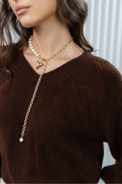 Этот стильный и удобный джемпер станет отличным дополнением вашего гардероба! Он идеально подходит для создания уютных и модных луков в прохладное время года, сочетая в себе комфорт, элегантность и универсальность. Джемпер отлично впишется в повседневный стиль, офисные будни или прогулки по городу. Цвет: светло-серый (шоколадный), который легко сочетается с различными оттенками и добавляет образу лаконичность и универсальность; Дизайн: джемпер с V-образным вырезом и объёмными рукавами 3/4, что придаёт изделию оригинальность и уют. Простой, но стильный крой подчеркивает женственность и комфорт; Материал: мягкая и приятная на ощупь трикотажная ткань, которая обеспечивает комфорт в течение всего дня. С чем носить: Джемпер отлично сочетается с брюками свободного кроя, как на фото, джинсами или юбками. Для завершения образа подойдут туфли на каблуке, лодочки или стильные ботинки. Дополните образ минималистичными аксессуарами, такими как тонкий браслет или серьги. Уход за изделием: Рекомендуется стирка в деликатном режиме при температуре до 30°C. Не использовать отбеливатели. Сушить в расправленном виде, избегая прямых солнечных лучей.