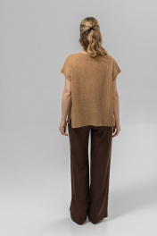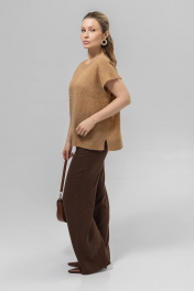 "Этот стильный джемпер из мягкого трикотажа станет идеальным дополнением вашего гардероба. Тёплый оттенок придаёт модели уют и универсальность, а свободный крой обеспечивает максимальный комфорт в течение всего дня. Основные особенности: Цвет: кэмел и молочный — актуальные и стильные оттенки, которые легко сочетаются с другими элементами гардероба; Материал: мягкий трикотаж — приятная на ощупь ткань, обеспечивающая тепло и свободу движений; Дизайн: свободный крой с короткими рукавами и круглым вырезом, подчёркивающий лёгкость и удобство; Универсальность: отлично сочетается с брюками, юбками и джинсами, подходит для создания как повседневных, так и стильных луков. Идеальный выбор для тех, кто ценит комфорт, стиль и натуральные материалы! Этот джемпер станет любимой вещью в вашем гардеробе. "