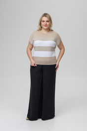 Этот уютный и стильный джемпер из мягкого трикотажа станет идеальным дополнением вашего гардероба. Сочетание полос придаёт модели современный и универсальный вид, а свободный крой с короткими рукавами обеспечивает комфорт в течение всего дня. Цвет: белая гамма с добавление полос— универсальные и актуальные оттенки, которые легко сочетаются с любыми элементами гардероба; Материал: мягкий трикотаж — приятная на ощупь ткань, обеспечивающая свободу движений и комфорт; Дизайн: джемпер хорошего кроя с короткими рукавами и круглым вырезом, дополненная горизонтальными полосами; Универсальность: отлично сочетается с джинсами, брюками, юбками и легинсами, подходит для создания как повседневных, так и стильных луков. Совет по стилю: Джемпер можно дополнить стильным поясом, кардиганом или яркими аксессуарами, чтобы создать как уютный, так и модный образ. Идеальный выбор для тех, кто ценит стиль, комфорт и универсальность! Этот джемпер станет любимой вещью в вашем гардеробе.