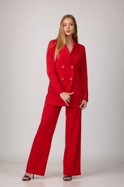 Красный брючный комплект из костюмной ткани с двубортным оверсайз жакетом Rosheli 1096/4