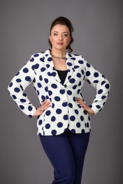Эффектность и современный шик - горохи снова в тренде! Комплект из стрейчевой костюмной ткани на подкладке, состоящий из жакета и брюк. Жакет приталенного силуэта с карманами с клапанами по переду. Воротник с лацканами пиджачного типа, рукава - втачные, длинные. Застежка на пуговицы. Брюки со средней посадкой, зауженные к низу, с карманами и регулируемым резинкой поясом. Застегиваются на молнию и пуговицу.