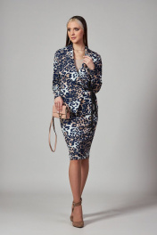 Роскошный комплект из стрейчевой костюмной ткани на подкладке, состоящий из жакета и юбки. Двубортный жакет с рельефами по переду, с завязками из атласа и потайной застежкой, с помощью которых можно легко регулировать ширину. Воротник - апаш. Рукава - длинные, двухшовные. Юбка на подкладке, слегка зауженная к низу, без пояса. Верх юбки обработан обтачкой. Шлица в среднем шве заднего полотнища юбки обеспечит свободу движения. Застежка - молния в среднем шве юбки. Цвет леопард.