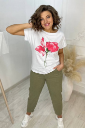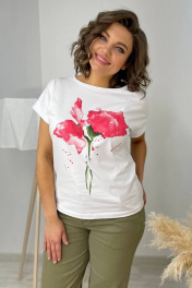 Футболка на каждый день из хлопка с принтом и спущенным плечом Rumoda 2061_кр коралл