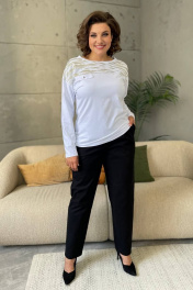 Базовый хлопковый джемпер с принтом и спущенным рукавом Rumoda 2135_дл/р белый