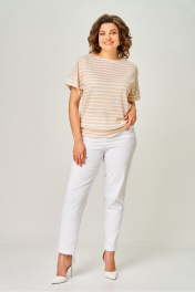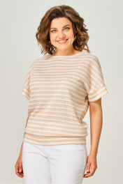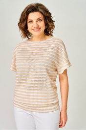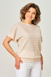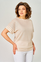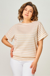 Джемпер женский из трикотажной ткани. Свободного силуэта. Спущенное плечо, оформлено притачной манжетой. Низ джемпера оформлен притачным поясом. Вырез горловины по спинке треугольный. Промеры на примере 50 размера: ОГ 108 (спущенное плечо), ширина по низу 104 см. Длина изделия: 61 см ±1.0 Длина рукава от основания шеи: 29 см ±1.0 см.
