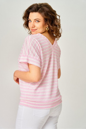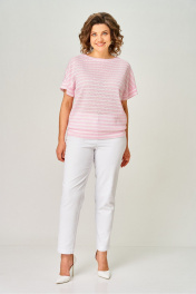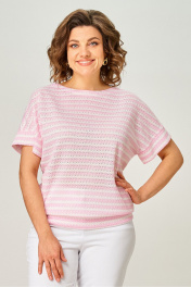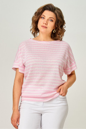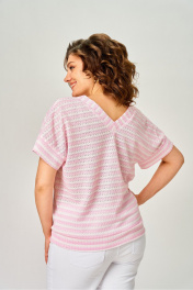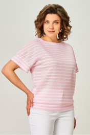 Джемпер женский из трикотажной ткани. Свободного силуэта. Спущенное плечо, оформлено притачной манжетой. Низ джемпера оформлен притачным поясом. Вырез горловины по спинке треугольный. Промеры на примере 50 размера: ОГ 108 (спущенное плечо), ширина по низу 104 см. Длина изделия: 61 см ±1.0 Длина рукава от основания шеи: 29 см ±1.0 см.