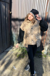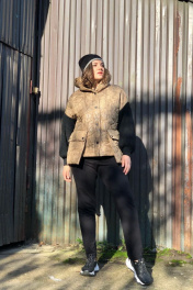 Куртка прямого силуэта со спущенным плечом, втачными вязаными рукавами и накладными карманами. Изделие по переду короче чем по спинке. Джемпер прямого силуэта. Брюки слегка заужены к низу, с карманами на молнии. замеры в 50 р: длина брюк — 101 см. ширина по бедрам — 55 см. длина джемпера — 64 см. длина рукава — 62 см. ширина по груди — 56 см. длина куртки по спинке — 68 см. ширина по груди — 63 см. длина рукава с уч плечевого — 75 см. замеры 54 р: длина брюк 102 см. ширина по бедрам — 59 см. длина джемпера — 67 см. ширина по груди — 60см. длина рукава с уч плечевого — 62 см. длина куртки — 74 см. ширина по груди — 67 см. длина рукава с уч плечевого — 75 см.