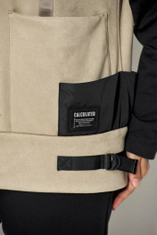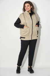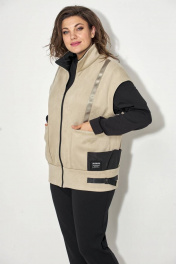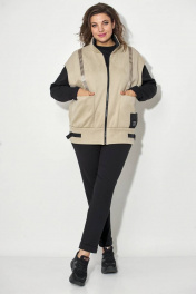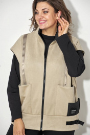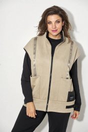 Верхняя одежда белорусского качества всегда пользуется спросом! В данном случае стильная жилетка из трикотажно-замшевой ткани с небольшим ворсом полюбится Вам. Безрукавка прямого силуэта в благородном ванильно-бежевом оттенке со спущенным плечом, низ на планке. Дополняют модель декоративные нашивки и тесьма. Застежка на молнию, воротник-стойка. На полочке накладные карманы, на левой полочке накладной карман из отделочной ткани. На планке по низу есть регуляторы ширины: что очень актуально для беременных женщин. Модель утепленного жилета подойдет для любых случаев, для женщин пышных форм мы сделали размерный ряд до 60 размера. Теплый домашний жилет обязательно заслуживает внимания, потому его можно носить осенью и зимой, а также в весеннюю пору. Очень приятный оттенок жилета благодаря которому можно сочетать изделие с другими предметами одежды. В светлом жакете Вы будете смотреться стильно в офисе и на работе. Данная верхняя одежда подойдет на высокий и низкий рост. Такой жилет универсальный и практичный, его смело можно брать в подарок любимым и близким людям.