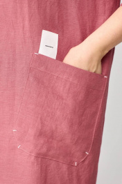 Платье рубашка прямого кроя со спущенным плечом, выполнено из дышащей качественной ткани. Воротник рубашечный, застежка на петли и пуговицы. По переду два накладных кармана фигурной формы, расположенных в хаотичном направлении.На правой полочке термопечать. Рукав рубашечный, длина регулируется при помощи паты. Форма низа фигурная, перед короче спинки незначительно. В боковых швах разрезы. Спинка с фигурной кокеткой. По центру складка.