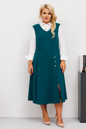 Женское платье - сарафан от белорусского производителя одежды, отрезное по линии талии. Платье в размерах 48-54 для невысоких девушек и женщин на рост 164 см. Длина платья -124 см. Верх полуприлегающий с У-образным вырезом по переду и спинке, выполнен на подкладке. Плечевые выполнены с накладкой, создающей четкую линию плеча. Нижняя часть сарафана расширена к низу складками по талии. Передняя часть с ассиметричным запахом, фиксирующимся на пуговицах. Минималистиный стиль и ничего лишнего, можно дополнить аксессуарами, подойдет модель платья — сарафана как в офис, так и на каждый день. Удобное и комфортное, не стесняет движений и сочетается с другими предметами одежды, можно комбинировать с рубашкой, блузой . Материал - костюмно-плательная ткань. Разнообразные цвета на выбор.