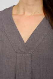 Платье свободного А-силуэта, в стиле «бохо», длина maxi. Перед цельнокроеный, с U-образным вырезом, переходящим во встречную складку. Горловина округлой формы с отрезной широкой планкой, переходящей на перед и на запах. Спинка разрезная, со средним швом. Рукав рубашечный, одношовный с широкой отрезной отделкой. В качестве отделки проложены отделочные строчки по всем швам изделия. По низу изделия и по низу рукава широкая декоративная отделочная строчка Приобретая одежду из льна Вы заботитесь о своей коже и здоровье организма. Ружана создает для Вас натуральные и модные изделия в которых комфортно в любую погоду! Приятных Вам покупок! Размеры сдвоенные 42-44, 46-48, 50-52, 54-56
