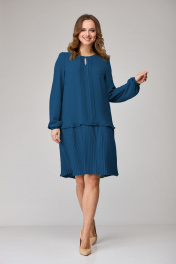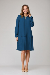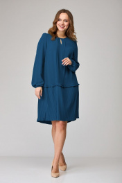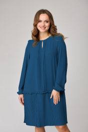 Платье свободного силуэта из модной ткани с защипами SandyNa 130109 морская волна