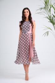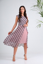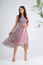 Платье SandyNa 130127 серо-розовый_горох