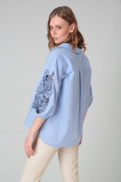 Блузка женская - стильный и неотъемлемый элемент современного базового гардероба, который дополнит городской образ на каждый день, на праздник, на торжество, в офис, подойдет для свиданий, прогулок. Блузка подойдет обладательницам пышных форм и будущим мамам. Свободный, удлиненный крой блузки не сковывает движений. Блузка идеальна как для высоких, так и для невысоких. Блуза из «дыщащего» 100% хлопка высокого качества обеспечит комфорт в любую погоду. Объемный рукав фонарик с манжетом придаст образу утонченность, скроет полноту рук. На рукаве выполнена оригинальная вышивка.