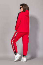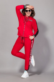 Комплект женский свободного силуэта спортивного стиля. Состоит из худи и брюк. Худи с капюшоном, по полочке карманы накладные типа "кенгуру", застежка на молнию. По низу худи и капюшону кулиса и шнур. По рукавам лампасы, на одном из рукавов декоративная печать, по полочке печать на груди. Рукава на манжетах-довязах. В брюках по талии резинка и шнур. По боковым швам контрасные лампасы, на одном декоративная печать. Карманы в боковых швах, два кармана на задней половинке брюк и карман-портфель на боковом лампасе. Брюки оканчиваются манжетами довязами. По переднему полотнищу брюк имитация застежки. Длина худи 61 см Длина рукава от плеча 71 см Длина брюк по боковому шву 98 см Состав ткани: 71% хлопок, 26% пэ, 3% эластан