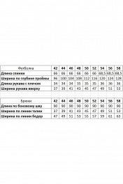 Комплект состоит из футболки и брюк в стиле «чинос». Футболка женская, свободного силуэта. Лимитированная партия эко футболок из высококачественного хлопка с дизайнерской печатью в итальянской технике «Градиент». Футболка прямого кроя с круглой горловиной. Горловина, рукав и низ футболки обработаны открытым срезом.  Брюки в стиле «чинос» из хлопкового турецкого джинса. Брюки с регулируемыми отворотами по низу, пояс на шлевках, сзади накладные карманы. В комплекте к брюкам прилагается пояс-стропа.