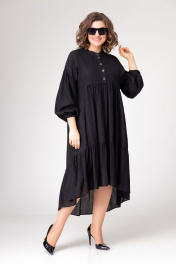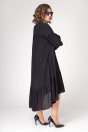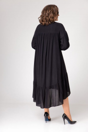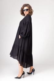 Платье свободного силуэта со сборками и воланом, на подкладке с карманами. Рукав спущенный, длинный со сборкой по линии проймы, на манжете. Воротник стойка. Застежка платья на петли-пуговицы, длиной до подреза спереди.