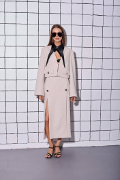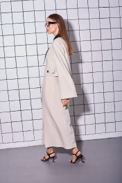 Юбка прямого силуэта, длина миди, с двумя разрезами по переду и декоративными пуговицами. Застежка по спинке на потайную молнию. Замеры: длина: 85см