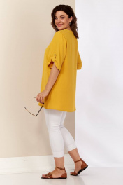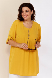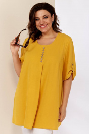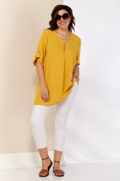 Жёлтая летняя блуза из мягкой струящейся ткани Shetti 4053 горчица