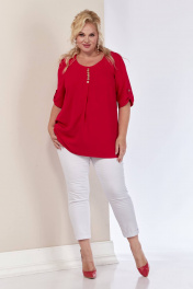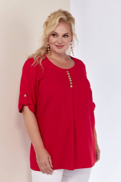 Блуза из мягкой струящейся ткани. Свободный, стильный, удобный и отличный выбор для ярких дней. Блузка прямого силуэта свободной формы с коротким рукавом с патой на пуговице. Перед с нагрудными вытачками. Вырез горловины округой формы. Полочка оформлена поперечной складкой и декоративным элементом в виде имитации застежки на пуговицы. Прекрасный выбор для любого гардероба в сочетании с брюками, джинсами или юбками. Длина изделия по спинке 77 см. Длина рукава 37 см. Прилагается таблица замеров, а также таблица для правильно определения своего размера.