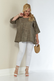туника из льна с фигурным низом и длинным рукавом Shetti 4063 капучино