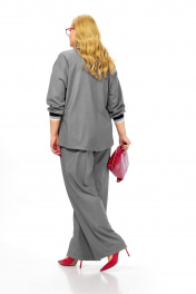 Стильный женский комплект двойка, состоит из свободного жакета на двух пуговицах и широких прямых брюк Палаццо. Изделие выполнено из приятной костюмной ткани, которая отлично держит форму, не сковывает движений и подходит для любого времени года. Жакет с английским воротником и рукавами на манжетах с довязами добавляет образу элегантности, а лаконичный серый цвет делает комплект универсальным для работы в офисе, деловых встреч или особого случая. Брюки с высокой посадкой идеально подчеркивают достоинства фигуры и обеспечивают комфорт в течение всего дня и сидят безупречно благодаря комфортной резинке на поясе в задней части и классическим поясом спереди, а практичные карманы подчеркивают их повседневный характер. Костюм легко комбинируется с различными топами и обувью, не требует сложного ухода и станет базовой вещью вашего гардероба, позволяя создавать современные и уверенные образы. Длина брюк по боковому шву с поясом 110 см. Длина жакета по спинке 73 см. Длина рукава от плечевого шва с довязом 43 см. Размер модели на фото: 56. Рост модели на фото: 173 см. Прилагается таблица замеров, а также таблица для правильно определения своего размера. Обращаем Ваше внимание, что цвет изделия может не на 100% соответствовать фото. Это во многом зависит от освещения во время фотосъемки и цветопередачи Вашего дисплея.