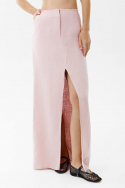 Льняная юбка maxi с разрезом спереди. Накладные карманы сзади.Карманы сбоку. Декоративные элементы - необработанные края.