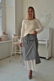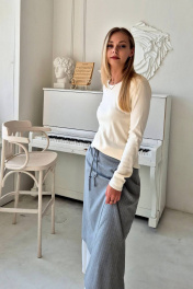 Джемпер прямого прилегающего силуэта. Горловина круглая, окантована декоративной бейкой. Рукав длинный втачной, окантован низ бейкой. По низу изделия также - декоративная бейка. Использовано трикотажное полотно, производства Турции, 95 % хлопка и 5 % лайкра. Предлагается модель для каждого дня.