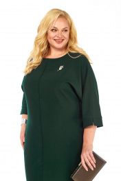 Силуэт полуприлегающий. Рукав цельнокроеный, «летучая мышь». . Длина рукава от горловины 57 см. Горловина закруглённая, на обтачке. По центру переда застрочен защип (стрелка). Спинка со средним швом. Внизу боковых швов выполнены разрезы. Длина по спинке 116 см. В Боковых швах карманы. Ткань — костюмно-плательная.