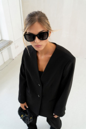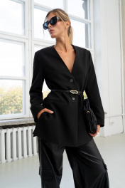 Черный жакет свободного силуэта из текстиля SILVERSPICE S-2423