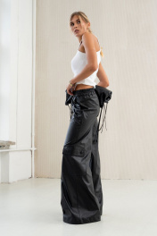 Брюки карго из эко-кожи свободного и расширенного кроя SILVERSPICE S-3414
