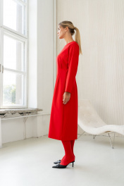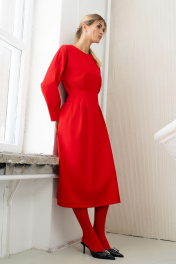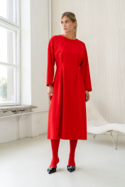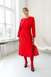 Платье миди с застроченными складками и талиевыми вытачками SILVERSPICE S-5423 красный