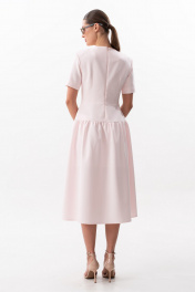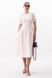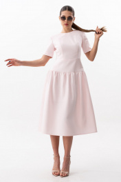 Платье прилегающего силуэта с отрезной линией талии и отрезной линией в области бедер. Нижняя часть платья со сборкой. Полочка верхней части с отрезными бочками и вытачками. Спинка с талиевыми вытачками. Застежка - потайная молния в среднем шве спинки. Рукав втачной укороченный, с плечевой накладкой. Платье полностью на трикотажной подкладке. Идеальный вариант для безупречного образа. Длина изделия по среднему шву спинки 116 см. Длина рукава 23 см.Параметры 44 р в готовом виде: ОГ 96 см, ОТ 78 см, ОБ 104 см. Изделие подходит на рост 164-170 см.