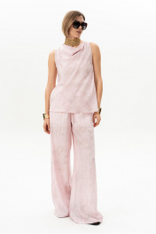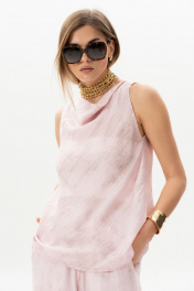 Блузка прямого кроя с асимметричной горловиной без рукавов. Длина блузки по центру спинки 59 см.
