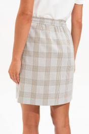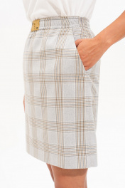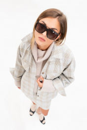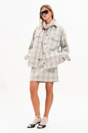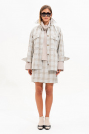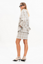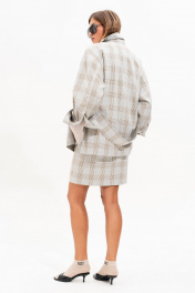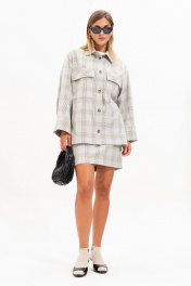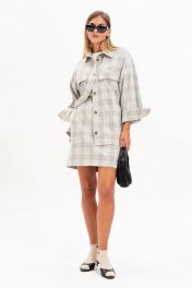 Комплект из рубашки оверсайз и мини юбки в модном клетчатом принте. Стильная рубашка свободного, прямого силуэта. Впереди накладные карманы с клапанами. Рукав на спущенной пройме, с притачной манжетой, застегивающейся на 2 пуговицы ( вторая пуговица служит для регулирования ширины манжета ). В боковых швах разрезы и пуговички, на которых крепится съемный хлястик. Воротник стояче-отложной с отрезной стойкой. Юбка длины мини на подкладке, прямого силуэта, универсальная и удобная посадка, застежка молния в боковом шве. Карманы боковые наклонные. Пояс юбки на резинке, что дает комфорт в повседневном использовании. На поясе декор в виде нашивки с лого. Трендовый комплект из клетки - это сочетание современных модных акцентов и функциональности, идеально вписывается как в деловые, так и в повседневные образы. Длина рубашки по спинке 72 см. Длина плеча 19 см. Длина рукава от спущенной проймы 52 см. Длина юбки по боковому шву с поясом 49 см. Параметры рубашки в готовом виде в 44-48 р.: обхват груди 118 см, обхват бедер 118 см. Параметры юбки в готовом виде в 46 р.: обхват талии 69 см (с резинкой ), обхват бедер 105 см.