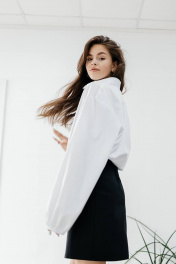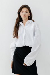 Оверсайз рубашка "облако" из хлопка ткани. Детали: рубашка прямого силуэта, спущенная линия плеча, застежка на пуговицы, длинные рукава на ризинке, прямой в низу на регулируемой резинке. Размер 42-46 - длина рукава от горловины 76, обьем по груди 120 Размер 48-52 , длина рукава от горловины 76, обьем по груди 128