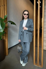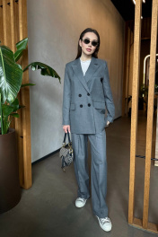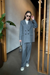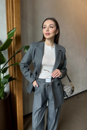 Двубортный свободный пиджак из костюмной шерстяной ткани Skipper Design 306 серый