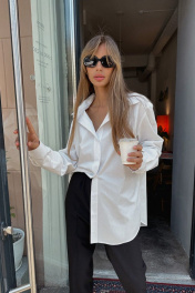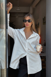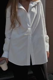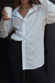 Классическая белая рубашка - базовая вещь в любом гардеробе. За счет свободного кроя подойдет на любой размер от 42 до 46. Длина изделия 81 см, длина рукава от воротника 77 см, ширина на уровне груд 61 см.