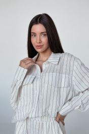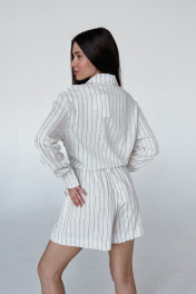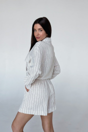 Льняной костюм с шортами от белорусского бренда дизайнерской одежды Skipper Design. Натуральный лен в составе ткани обеспечивает идеальную терморегуляцию – в костюме не жарко и не холодно. Пояс на резинке шорт обеспечивает комфортное прилегание к талии и хорошую посадку на фигуре. Данная модель имеет свободный оверсайз крой, что подчеркнет Ваши достоинства и скроет недостатки фигуры. Обратите внимание на детали - на поясе шорт нашит фирменный логотип Skipper Design, что добавляет эксклюзивности и индивидуальности образу. В нашем oversize пиджаке два удобных кармана с клапанами, которые легко прячутся внутрь кармана, двубортная застежка на пуговицы, а в линию плеча мы вставили плечевые накладки, чтобы придать акцента этой области. Параметры: шорты: длина изделия 42 см, обхват талии 64-76 см, обхват бедер 92-100 см; рубашка: длина изделия 73 см, длина рукава от воротника 79 см, ширина на уровне груди 56 см. Подходит на размеры 42-46.