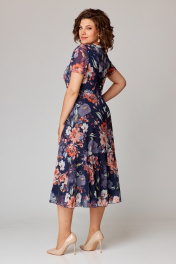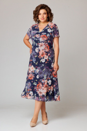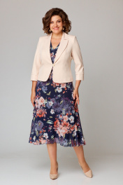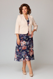 Платье и жакет из шифона и костюмной ткани с пиджачным воротником Slaviaelit 166 т.синий+пудровый