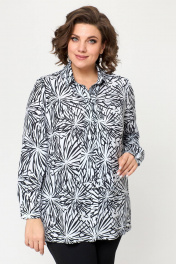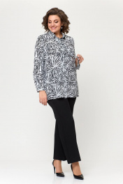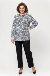 Блуза удлиненная с бантовым воротником и разрезами Slaviaelit 532 бело-черная