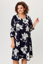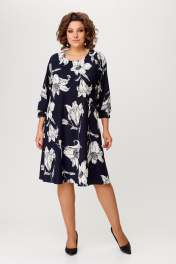 Платье А-образного силуэта из плательного крепа с рукавом 3/4 Slaviaelit 545 т.синий