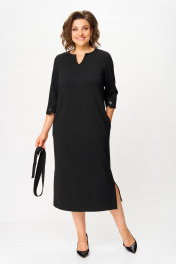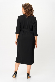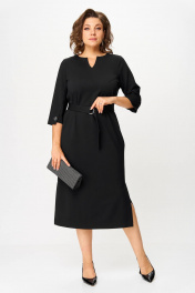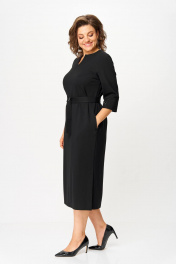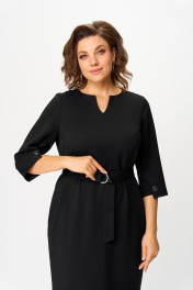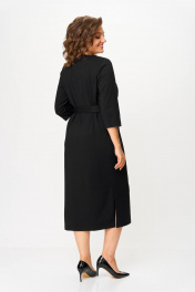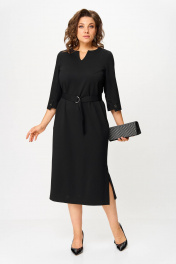 Спинка цельнокроеная, перед с нагрудными вытачками из пройм. Рукав втачной 3/4, двушовный, в переднем шве обработана шлица с пуговицей и асимметричным низом. Вырез горловины фигурный. В боковых швах есть карманы, по низу по бокам две шлицы (длиной 29см) Пояс съемный на двух полукольцах. Длина платья по центру спинки 48-58 - 119см (допуск (+-) 2см) Длина рукава р.48-58 - 46 см (допуск (+-) 1см) Ширина по линии груди 1/2: р.48-53см, р.50-55см, р.52-57см, р.54-59см, р.56-61см, р.58-63см (допуск (+-) 1см) Ширина по линии талии 1/2: р.48-52см, р50-54см, р52-56см, р.54-58см, р.56-60см, р.58-62см (допуск (+-) 1см) Ширина по линии бёдер 1/2: р.48-55см, р.50-57см, р.52-59см, р.54-61см, р.56-63см, р.58-65см (допуск (+-) 1см) Ширина рукава под проймой 1/2: р.48-17см, р.50-18см, р.52-19см, р.54-20см, р.56-21см, р.58-22см(допуск (+-) 0,5см) Ширина спинки вся р.48,50,52 - 39,5см, р.54,56,58 - 43,5см (допуск (+-) 0,5см) Ширина плеча: р.48,50,52 - 9,7см, р.54,56,58 - 11см (допуск (+-) 0,5см)
