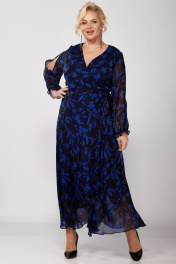 Элегантное женское платье из блузочной ткани (шифон) отрезное по линии талии, на запах. Благодаря своему крою прекрасно будет смотреться на любой фигуре, скрывая недостатки. Спинка и полочка -двойные. Юбка-солнце (двойная). На лифе переда-нагрудные вытачки . Спинка верхняя часть цельнокроеная, юбка со швом по центру. В правом боковом шве лифа - отверстие для пояса, который протягивается и завязывается. Рукав втачной, по переду разрез. По низу рукава – легкая сборка на резинке. Длина платья: верхняя часть: - 42см, юбка -103см. Длина рукава: (50-56)-61см.
