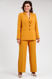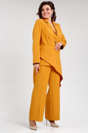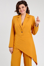 Двухпредметный костюм из текстиля с набедренной косынкой и элегантным жакетом SMilaLine М-25302 горчица