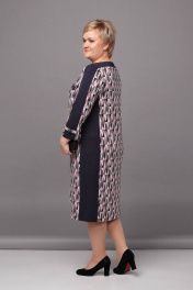 Платье женское полуприлегающего силуэта, с цельнокраёными бочками спинки и полочки. Без боковых швов. Платье с отрезными кокетками по переду и спинке. Рукав втачной, с отделочной полоской по центру и плечевыми накладками. Длина рукава - 50 см, длина изделия - 104 см.